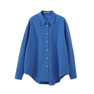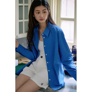 Jicouture克莱因蓝燕尾领精梳棉衬衫女秋季法式百搭通勤简约上衣