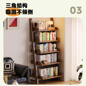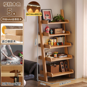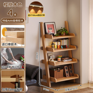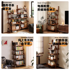 全实木梯形书架卧室置物架落地一体靠墙书柜家用房间多功能收纳架