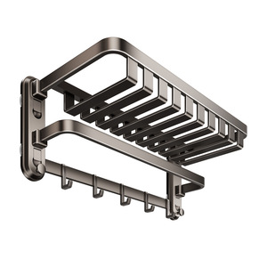 60CM枪灰四吸盘扁杆带钩浴巾架