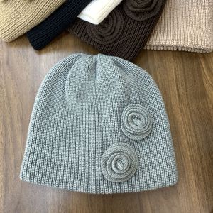 韩版立体玫瑰冷帽甜美百搭针织帽子女保暖毛线帽护耳防寒包头帽潮