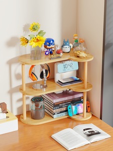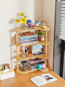 书桌面转角书架收纳储物多层置物架桌上整理简易小架子实木杆储物