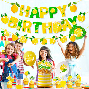 新品水果柠檬主题生日派对装饰 柠檬派对横幅拉旗蛋糕插牌装饰