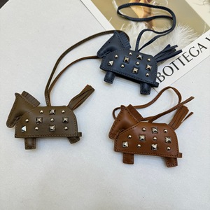 新款羊皮小马挂件汽车挂坠钥匙真皮铆钉战马女包挂饰大牌同款h 家