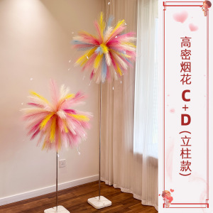婚房订婚宴装饰多巴胺仿真烟花新娘晨袍拍照背景布置彩色白日烟花