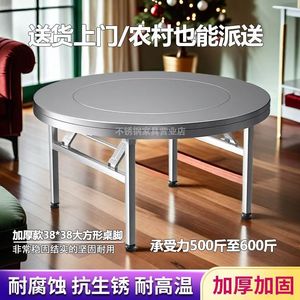 新款特厚不锈钢圆桌子可折叠内置转盘餐桌家用餐馆酒店不锈钢餐桌
