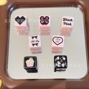 烤漆粉黑色系方块串珠 diy亚克力包挂手机链钥匙扣服饰配件材料
