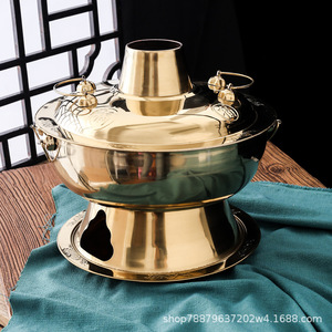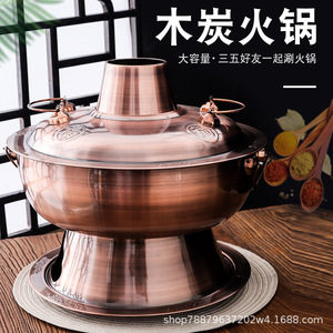 老北京不锈钢火锅仿紫铜老式木炭火锅锅家用打边炉涮羊肉烧碳火锅