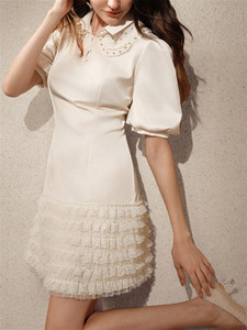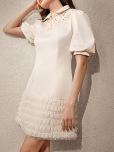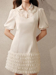 2025跨境欧美外贸女装春夏钉珠荷叶边拼接法式优雅现货连衣裙