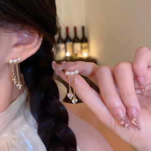 轻奢小众韩系甜美气质长款流苏耳环精致微镶锆石爱心耳钉网红耳饰