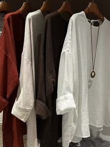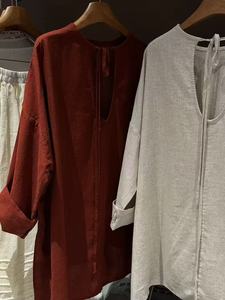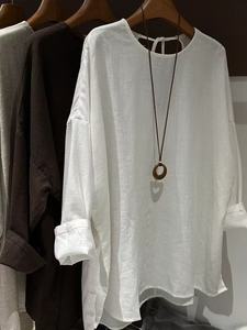 亚麻百搭露背长袖开叉上衣T恤女早2025秋季新款系带款式套头上衣