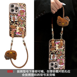 豹纹kt猫挂绳适用苹果16promax手机壳15全包镜头膜13高级感女生11