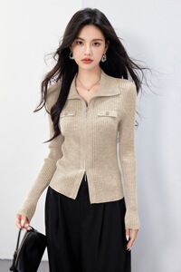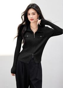 实拍◆有现货◆深呼吸真的好!2025秋季简约双头拉链针织开衫上衣