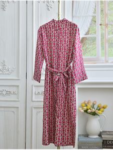 高端18姆米重磅真丝连衣裙鲤鱼印花中长裙9分袖腰带修身女早秋款