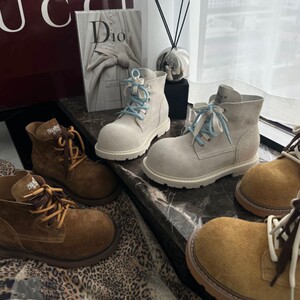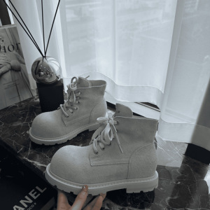 L玲L哒同款~2025新款 欧洲站 内增高 马丁靴 萌萌大圆头 ins潮流