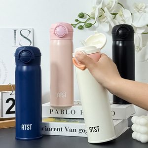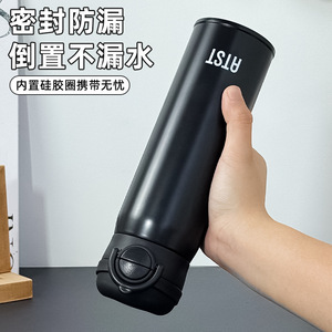 简约纯色男女手提车载保温杯 弹跳盖真空双层直身杯商务礼品水杯