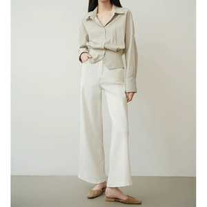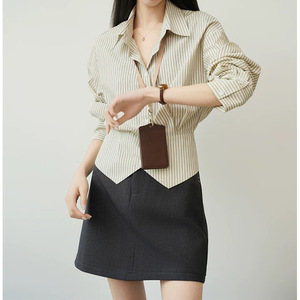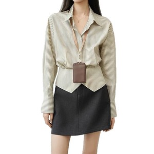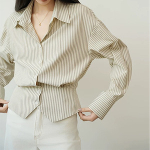 现货厂家批发 新款 收腰条纹衬衫女士 职业通勤衬衣开叉 女