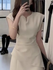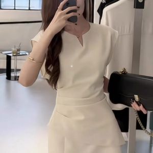 时尚气质名媛风V领不规则收腰短袖女2025夏季设计感独特别致上衣
