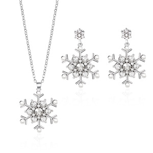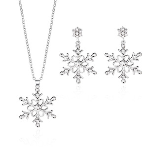 欧美跨境新款圣诞雪花系列饰品女圣诞节彩色镶钻雪花项链耳环套装