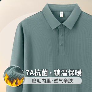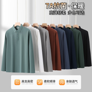 长袖T恤男士Polo衫纯色翻领中青年商务休闲秋针织上衣高弹透气