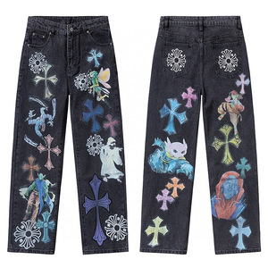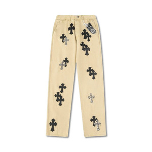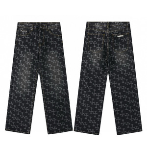 正确版CH克罗伈十字架皮标水洗牛仔裤情侣街头宽松春秋男女长裤款