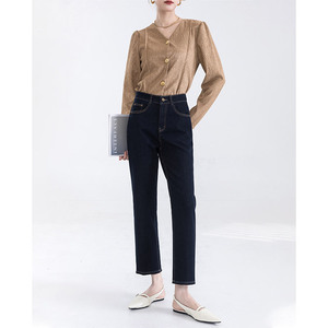 高腰直筒牛仔裤女宽松弹力显瘦2025新款复古小个子九分法棍烟管裤