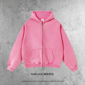 KITE男装蜡染复古做旧潮牌男卫衣oversize宽松水洗加绒拉链男帽衫