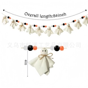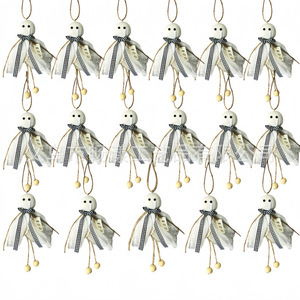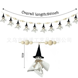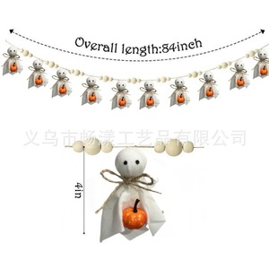 新款万圣节蝙蝠吊牌创意木珠串麻绳串珠 DIY家居墙壁挂件娃娃吊饰