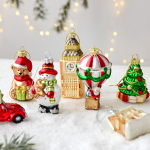 跨境新品圣诞装饰圣诞树挂件创意玻璃彩绘小吊饰挂件氛围场景布置