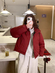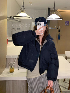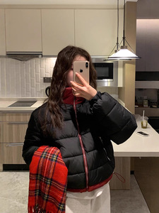 冬季韩版撞色两面穿羽绒棉服女短款立领宽松加厚小个子学生面包服
