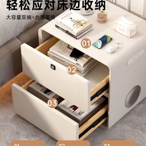 奶白色【实木抽屉】【带指纹锁+USB插排+蓝牙音响】