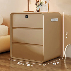 三抽卡其色【实木抽屉】【带指纹锁+USB插排】