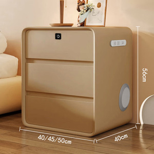 三抽卡其色【实木抽屉+实木框架】【带指纹锁+USB插排+蓝牙音响】