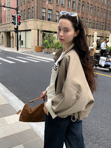 MOXI十三行女装2025秋季新款韩系上衣休闲立领短款夹克风衣外套女