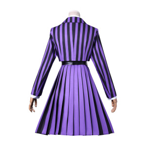 伊萌儿童成人星期三cos亚当斯一家COS紫色条纹校服cosplay服装