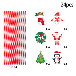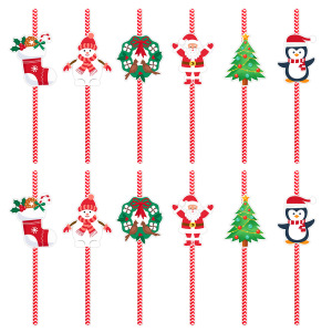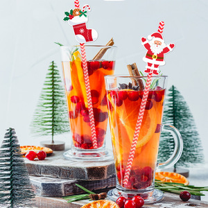 亚马逊新款圣诞节卡通雪人圣诞树纸质一次性吸管派对饮品装饰插件