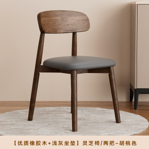 胡桃色【浅灰软包座面】优质橡胶木/单把装-优质