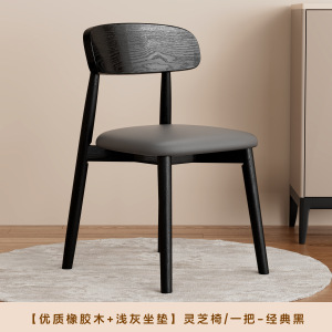 经典黑【浅灰软包座面】优质橡胶木/单把装-优质