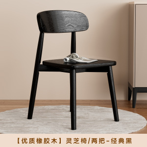 经典黑【实木座面】优质橡胶木/两把装-优质