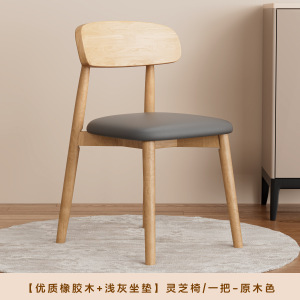 原木色【浅灰软包座面】优质橡胶木/单把装-优质