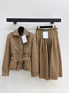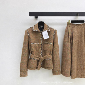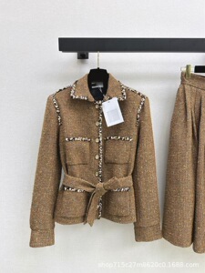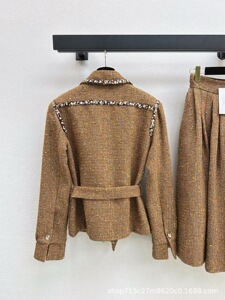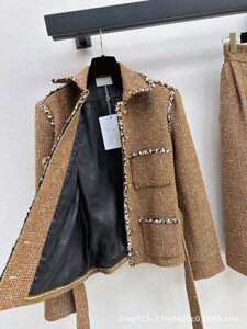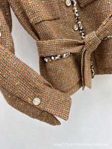 深圳南油25秋冬名媛气质高级优雅千金粗纺羊毛呢收腰显瘦编织外套