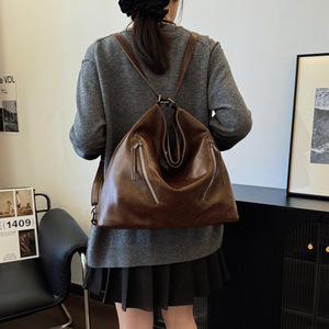 复古双肩包包女秋季2025新款潮时尚韩托特包休闲大容量背包水桶包