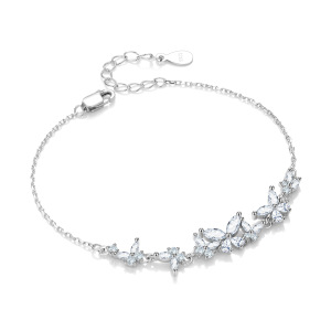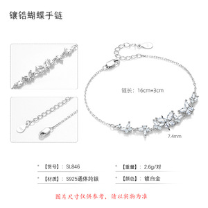 S925纯银紫藤花微笑手链女蝴蝶造型小众轻奢设计感可调节手饰