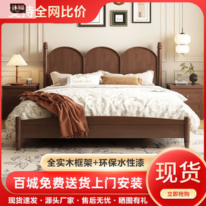 双人床1.5米1.8米复古美式实木床现代简约中古风公寓出租屋民宿床