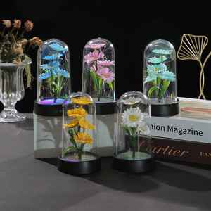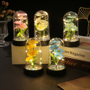 新款永生花玻璃罩小夜灯装饰花室内鲜花摆饰收容七夕送礼成品批发