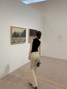 CHICYOU 自留 显身材金扣明线弹力裤紧身百搭休闲喇叭牛仔裤女