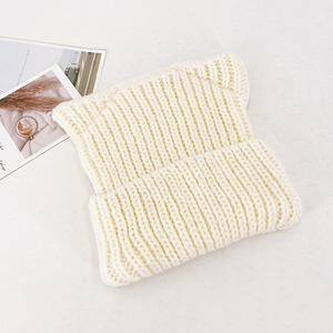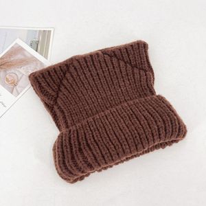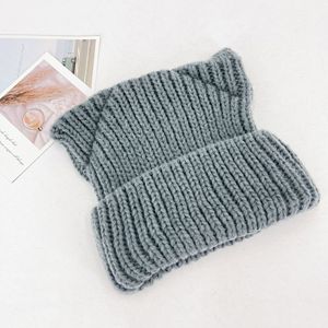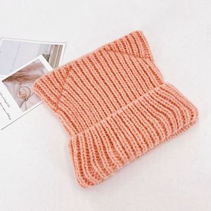 毛线帽秋冬款猫耳朵针织帽百搭显脸小套头帽保暖防寒加厚护耳帽子