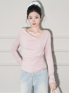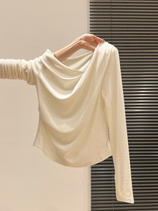 季优 荡领斜肩打底衫T恤女内搭秋冬季纯欲修身独特别致设计感上衣