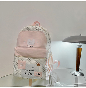 日系新款高颜值清新甜美可爱猫咪波点背包初高中生轻便春游双肩包