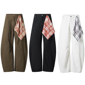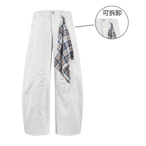 白色美式水洗弯刀牛仔休闲裤男宽松版型垂感镰刀裤直筒透气