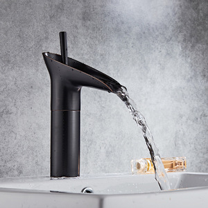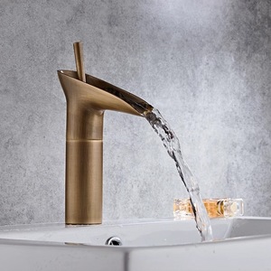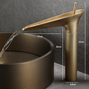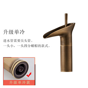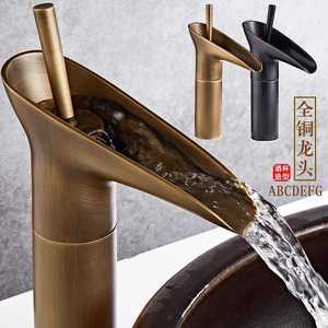 仿古黄铜酒杯瀑布式面盆龙头家用浴室柜洗脸台上盆冷热防溅水龙头
